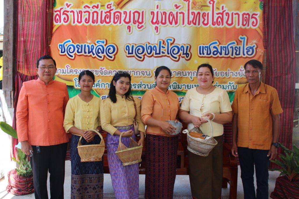 ในการนี้ นางสาววิราวรรณ มั่นจิตต์ พัฒนาการอำเภอปรางค์กู่ มอบหมายให้ นางสาวสุภาพร เพียะวงค์ นักวิชาการพัฒนาชุมชนปฏิบัติการ พัฒนากรผู้ประสานงานตำบลพิมายเหนือ พร้อมด้วย นางสาววรรณรัตน์ พงษ์วิเศษ และ นางสาวธนาภา สายพิน นักศึกษาฝึกประสบการณ์วิชาชีพ มหาวิทยาลัยราชภัฏศรีสะเกษ ร่วมกิจกรรม โดยมีวัตถุประสงค์เพื่อส่งเสริมการสวมใส่ผ้าไทยที่ผลิตในท้องถิ่น (ผ้าไทยใส่ให้สนุก) ใส่ได้ทุกวัน " และเพื่อนำปัจจัยเงินจากการตักบาตรฯเข้าสมทบกองทุนแก้จนแบบบูรณาการของตำบล เพื่อในการสนับสนุนกิจกรรมที่ 2 การจัดสวัสดิการและซ่อมแซมสร้างที่อยู่อาศัยตามฐานข้อมูลฯTPMAP และ ThaiQM และการนำข้าวกันบาตรที่เป็นข้าวสารอาหารแห้ง แล้วจัดเป็นชุดถุงยังชีพ เพื่อนำไปสงเคราะห์ครัวเรือนยากจนตามฐานข้อมูลฯ TPMAP และ ThaiQM ให้สอดคล้องกับการขับเคลื่อนงานตามโครงการแก้ไขปัญหาความยากจนแบบบูรณาการ ตามหลักปรัชญาของเศรษฐกิจพอเพียง ภายใต้โครงการอำเภอนำร่อง “บำบัดทุกข์ บำรุงสุข” แบบบูรณาการ
